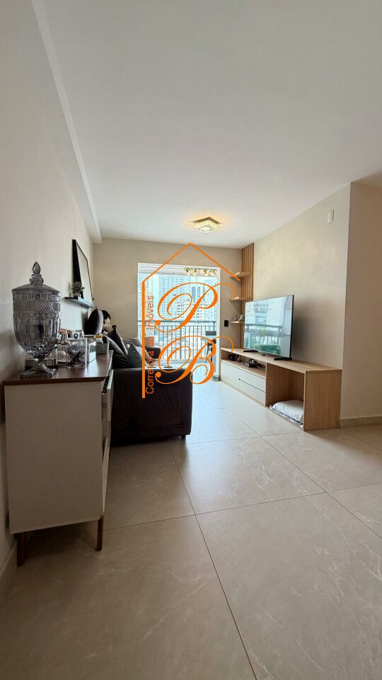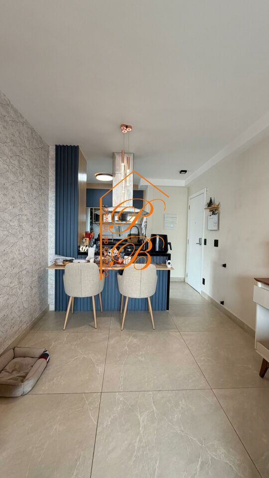 Apartamento para venda com 77 m², 3 dormitórios, 1 suíte, cozinha americana, ampla sala integrada com a varanda que tem fechamento em vidro, banheiro social, 1 vaga de garagem coberta.